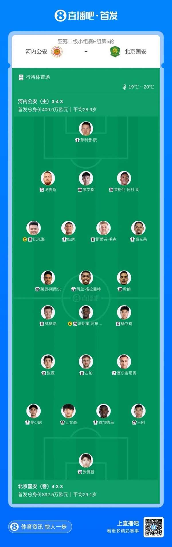 北京时间11月27日晚20:15,亚冠二级小组赛E组将迎来关键对决,北京国安作客越南挑战河内公安队。赛前公布的首发阵容显示,国安主帅派出张健智镇守龙门,外援组合塞尔吉尼奥与法比奥领衔锋线。