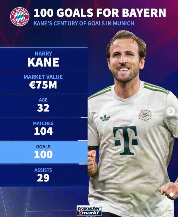 在拜仁慕尼黑4-0大胜云达不莱梅的德甲较量中,英格兰前锋哈里·凯恩完成梅开二度,成功解锁身披拜仁战袍攻入100粒进球的里程碑。根据德国转会市场最新统计,这位锋线杀手在代表拜仁出战的104场正式比赛中,不仅斩获百球,还送出29次助攻,场均直接参与1.24球,展现出恐怖的进攻效率。