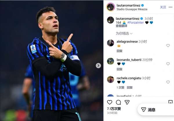 在国米4-0横扫科莫的比赛中,劳塔罗延续了火热状态,赛后这位阿根廷前锋在个人社交媒体晒出进球庆祝照片,并特意标注自己已为蓝黑军团攻入164粒进球。这一数字距离队史射手榜第三位的博宁塞尼亚(171球)仅差7球。